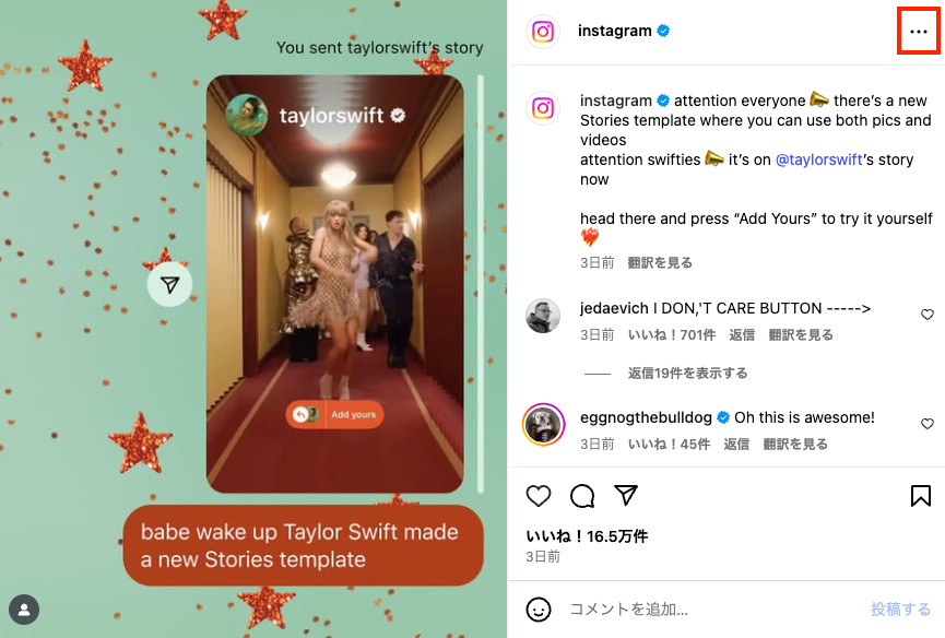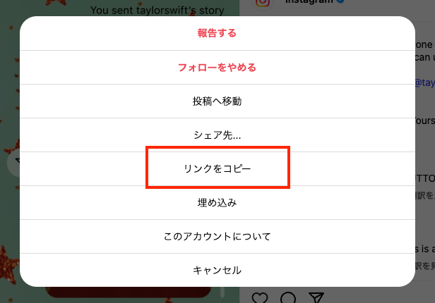 Instagramで投稿のURLをコピーする手順